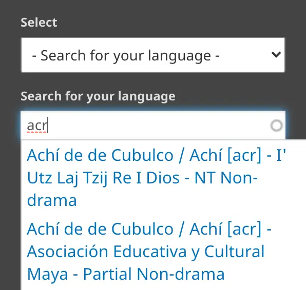 1) In the new space that appears, write the language name or three-letter Ethnologue code.