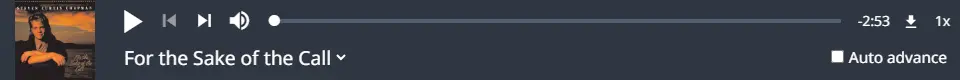 c) Other player controls (jump forward and back; volume; progress bar; playing speed; download options; auto-advance preference) are also located on the player.