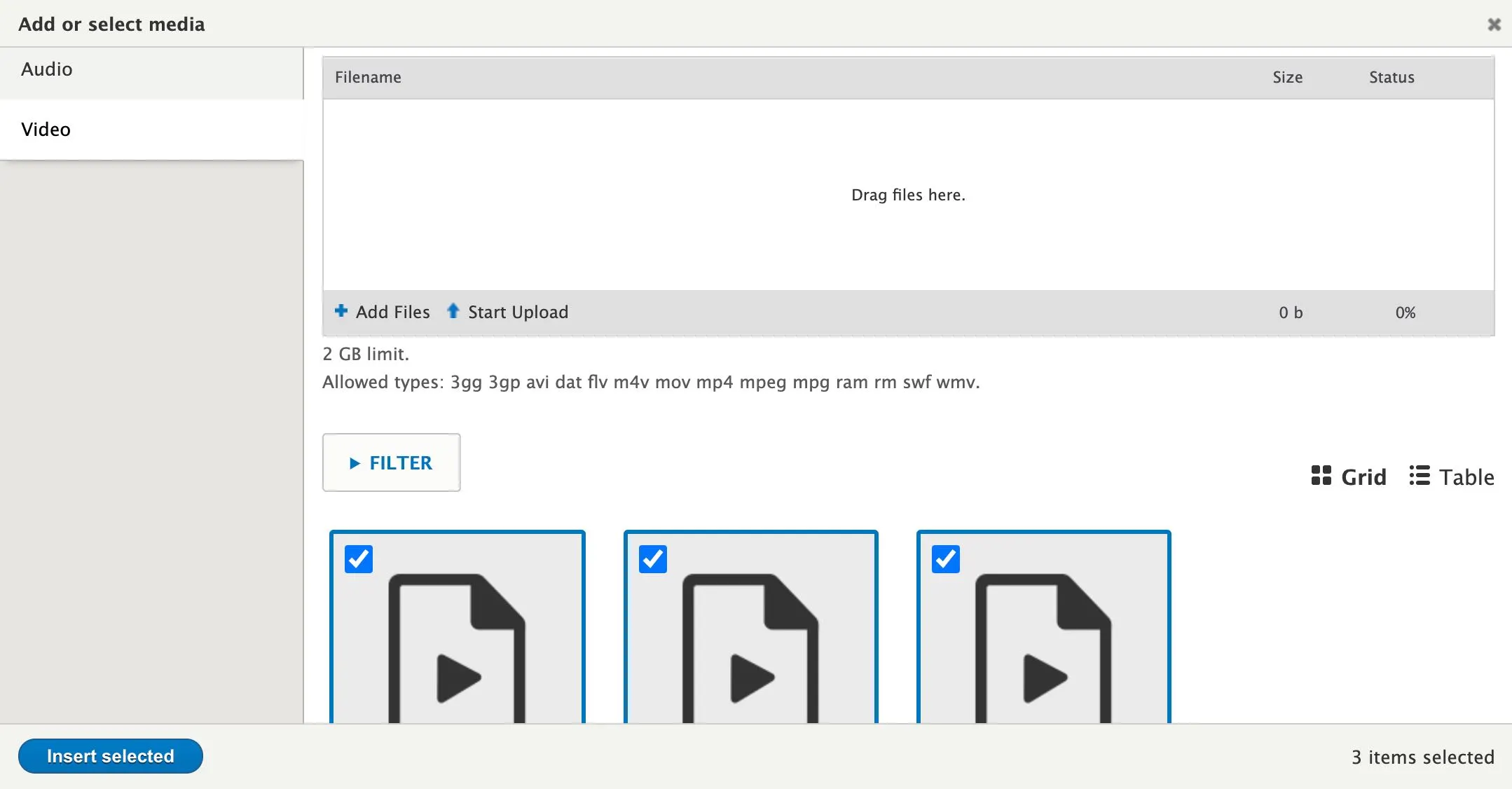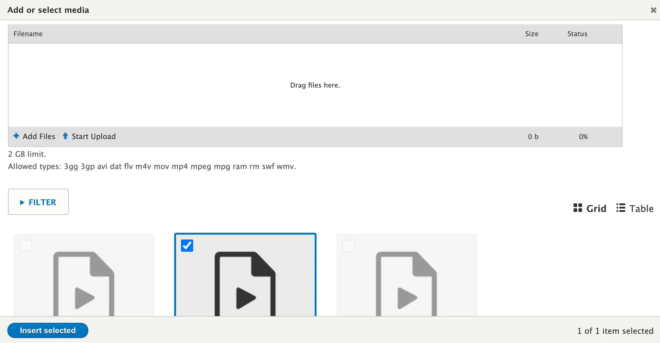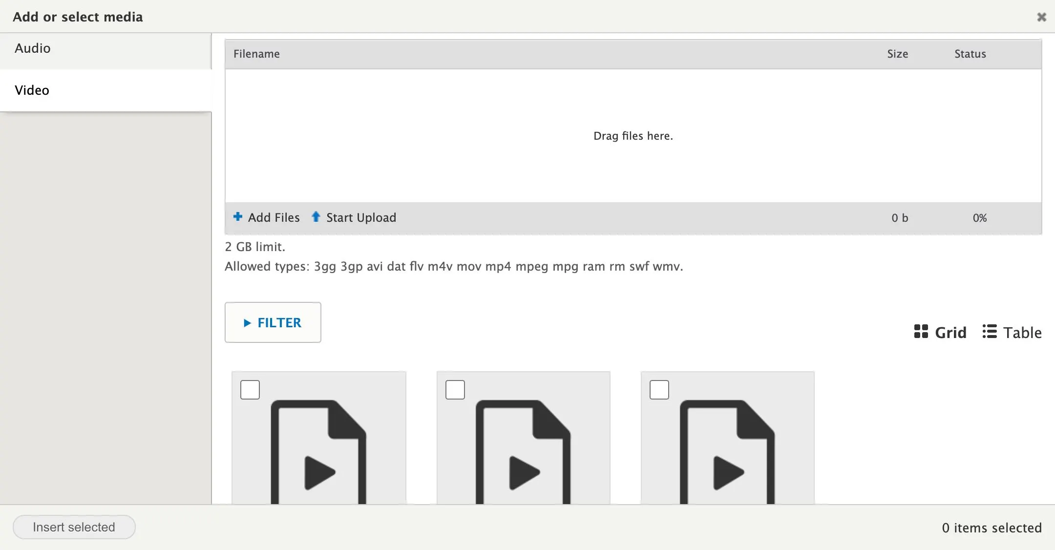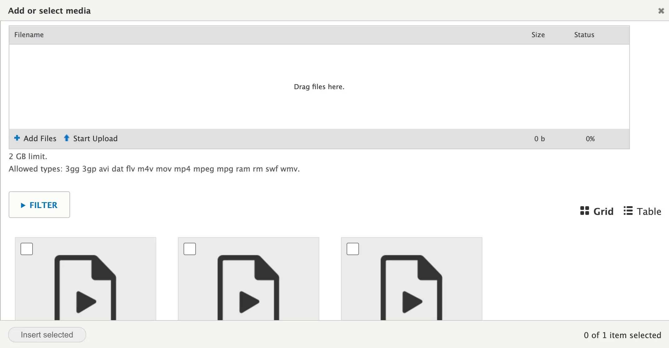 c) If you have already uploaded videos to your website, they will appear in the lower section of the working box.