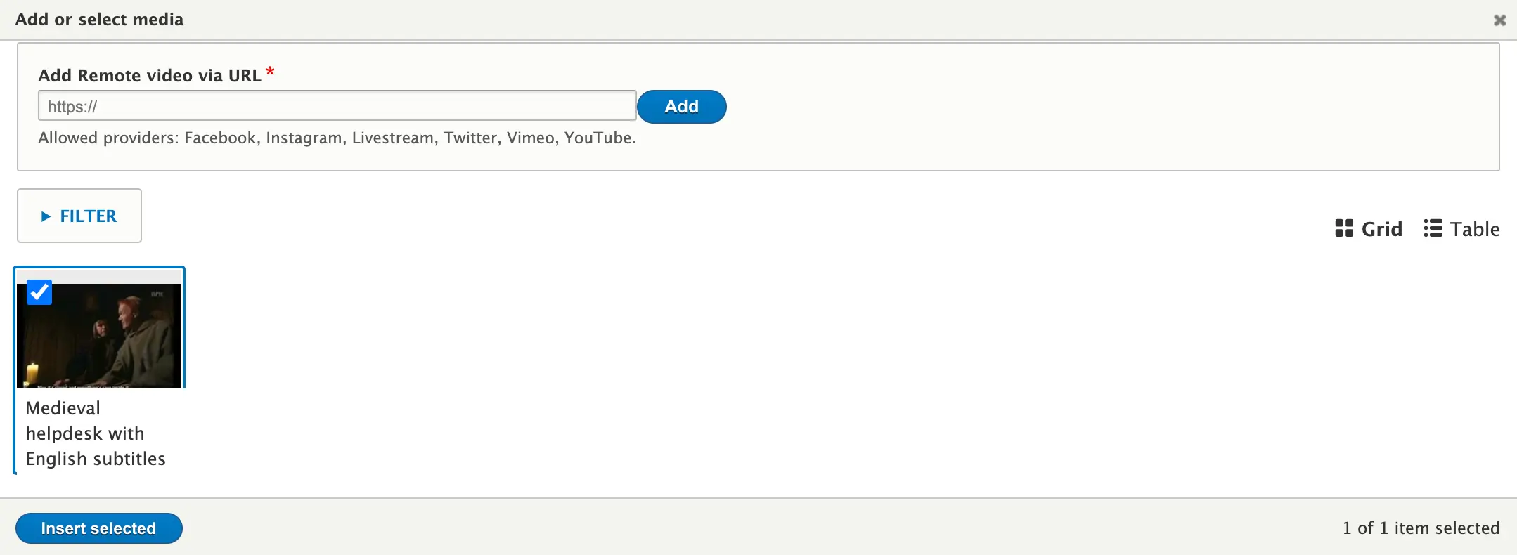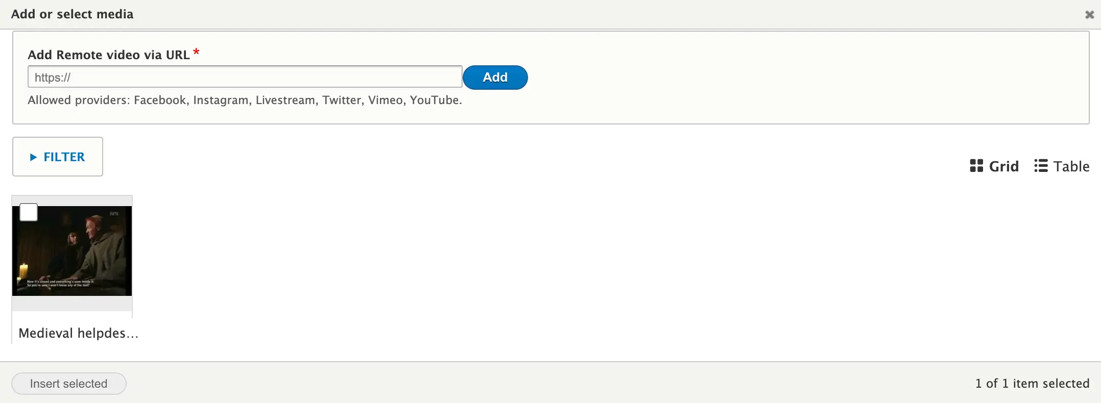 c) If you have already linked to remote videos in your Media Library, they will appear in the lower section of the working box.