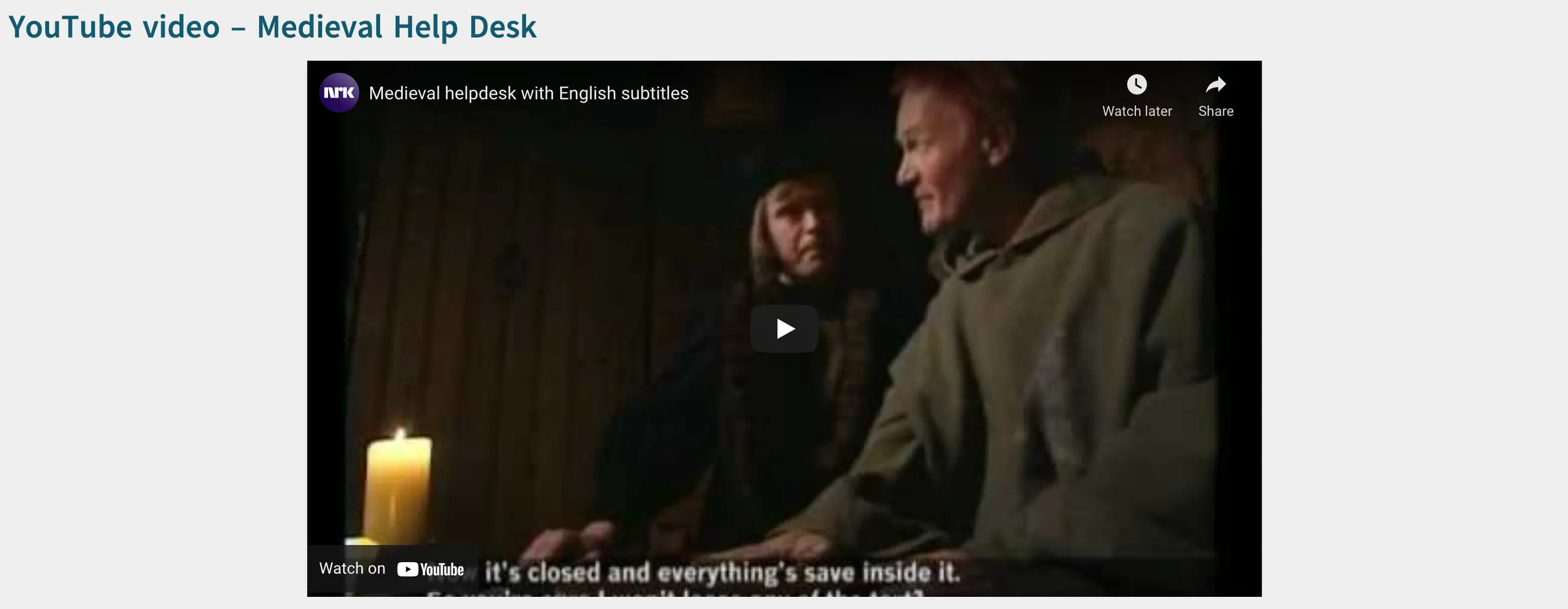 b) Other player controls (pause/replay; volume; progress bar; share; subtitles; full-screen option) are located at the bottom of the viewer frame.