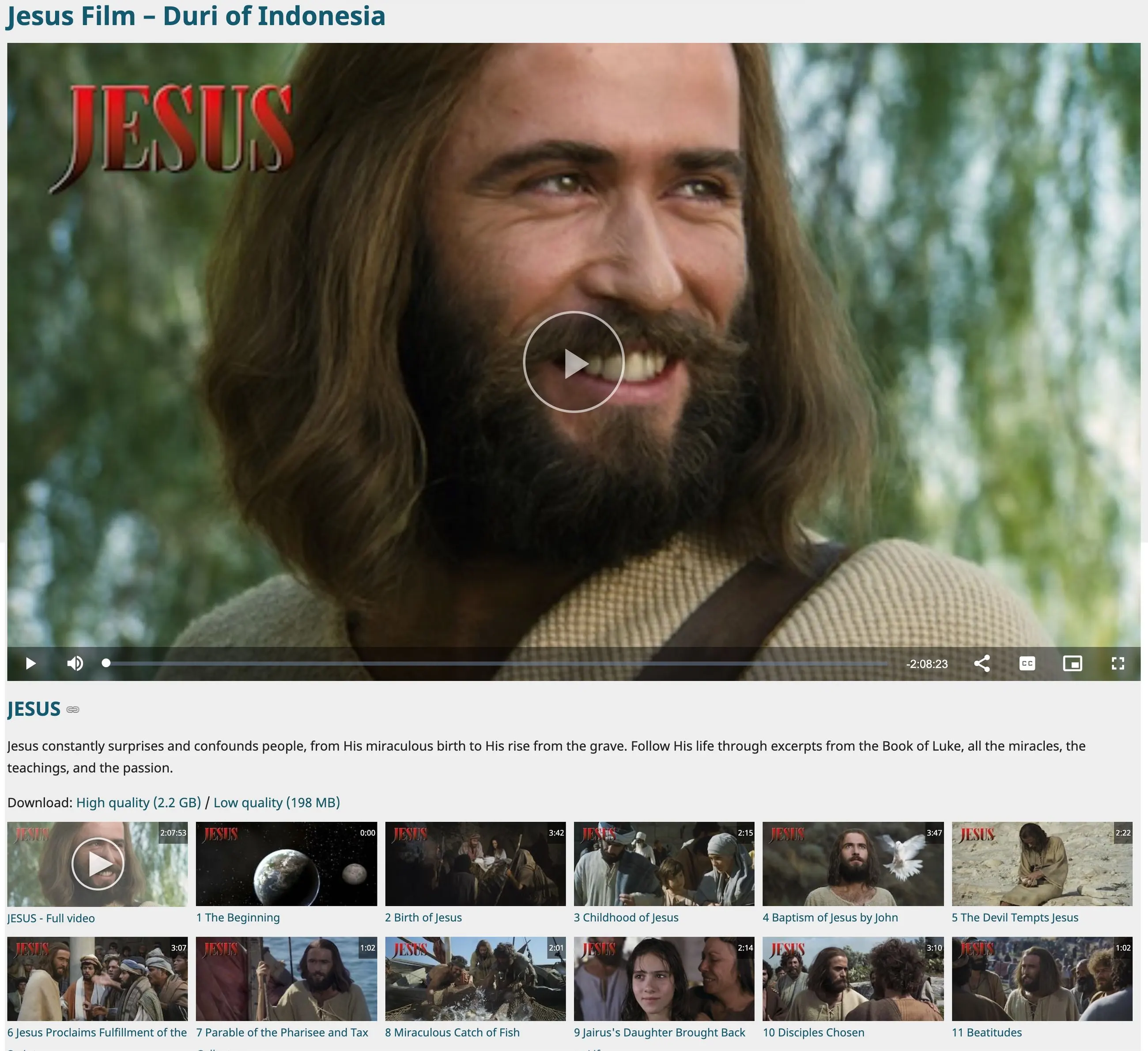 c) Click on the Scripture reference at the lower left of the viewer frame to open a grid of film segments.