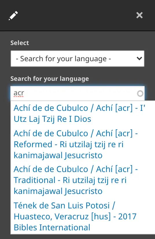 1) In the new space that appears, write the language name or three-letter Ethnologue code.