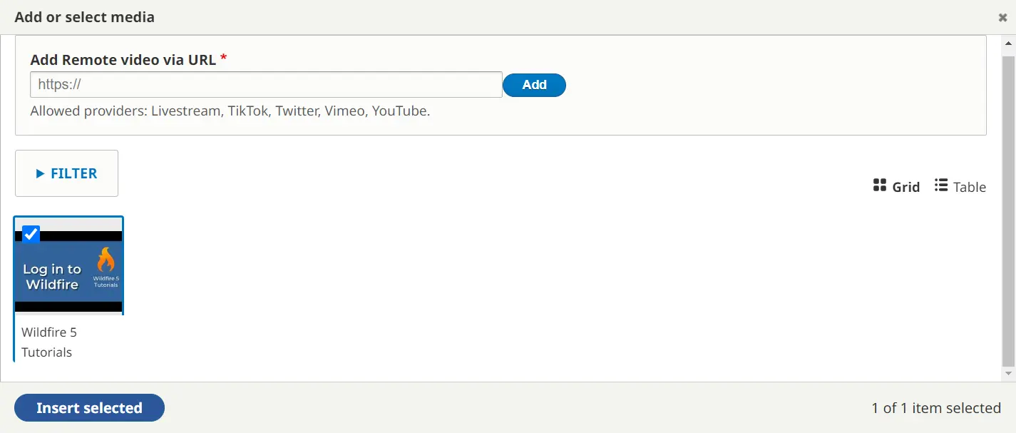 6. Follow the same steps as you would to insert a regular Remote Video: