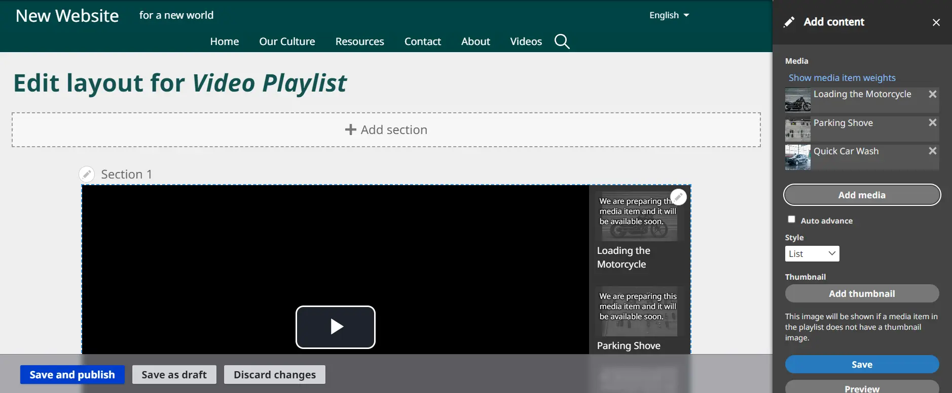 8. If some of the items in the playlist do not have their own thumbnail image, you may choose to add a playlist thumbnail image to replace the simple system video image.