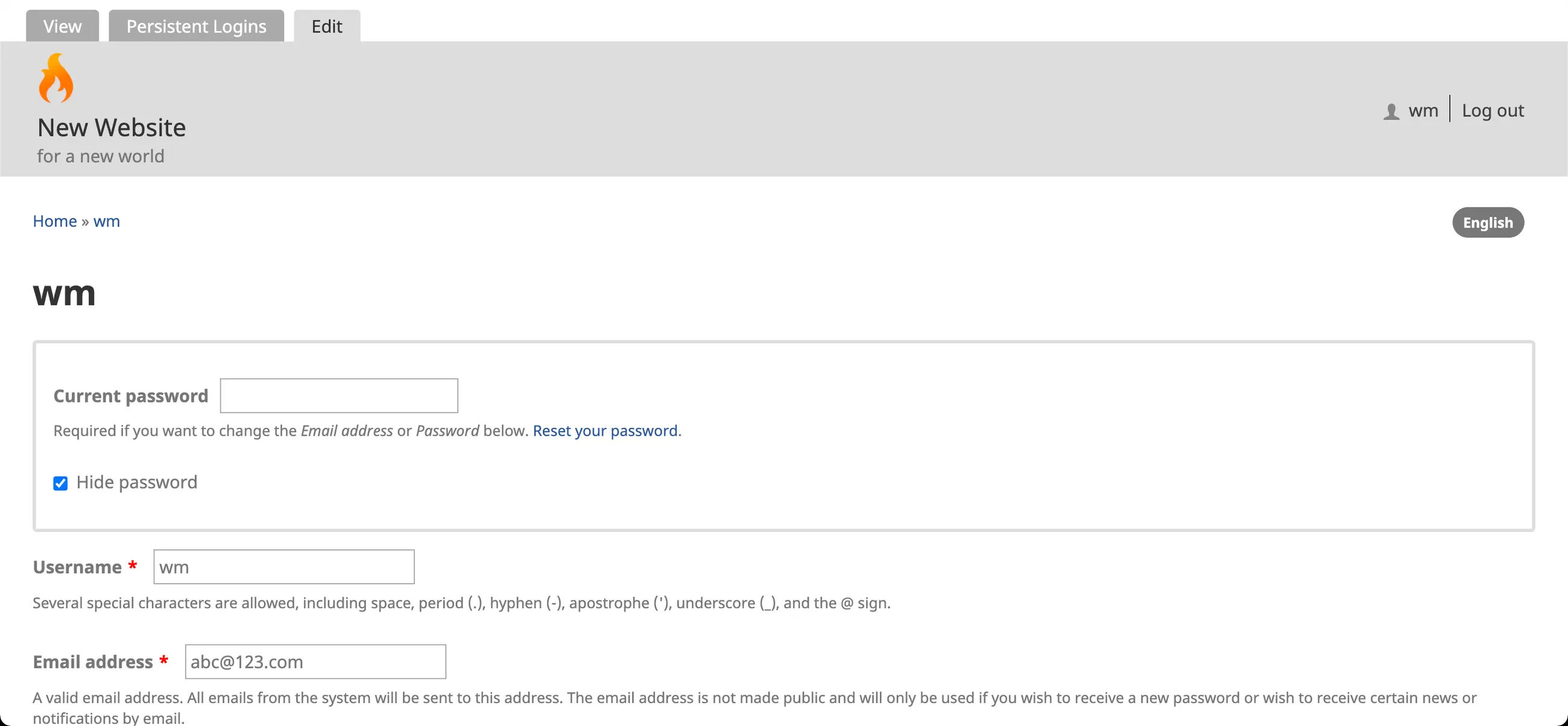 4. To change your username, e-mail address, or password, you must enter your current password at the top of the screen.