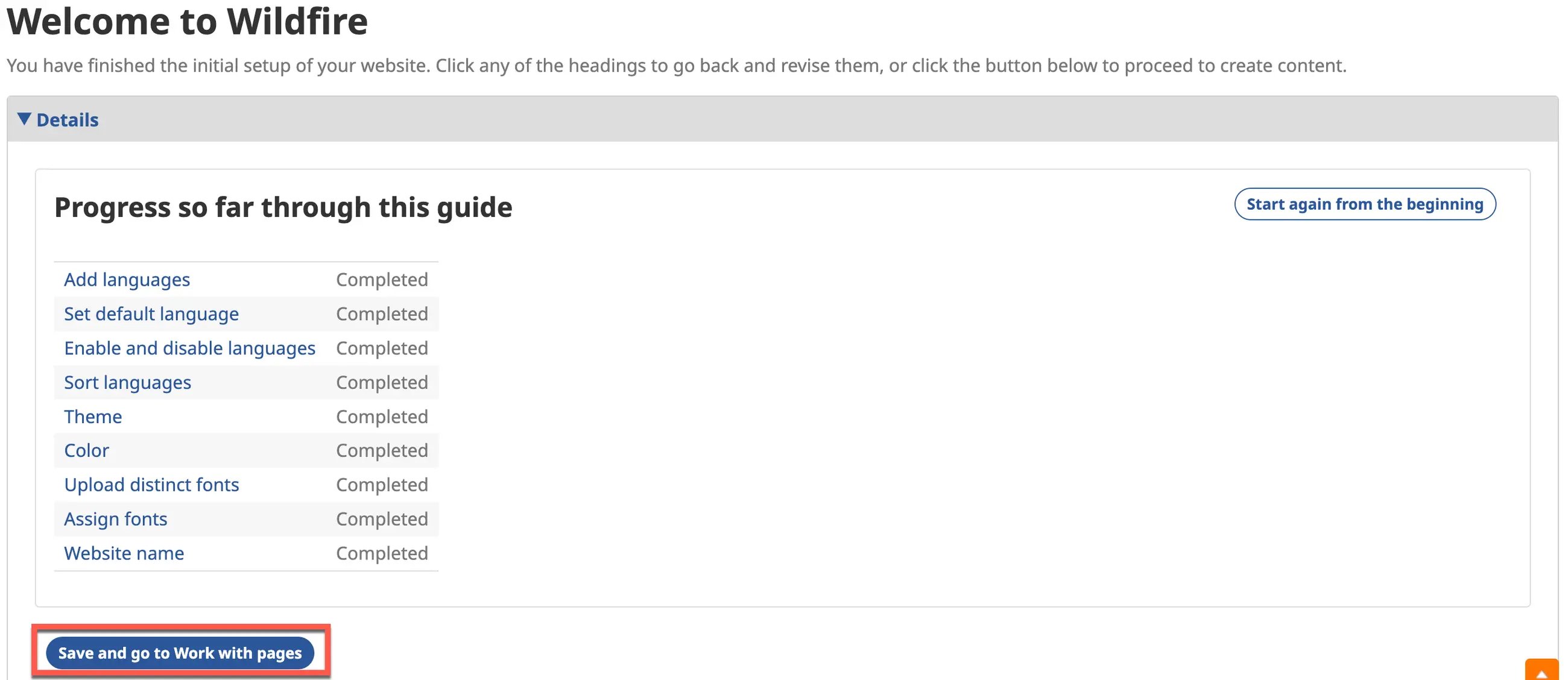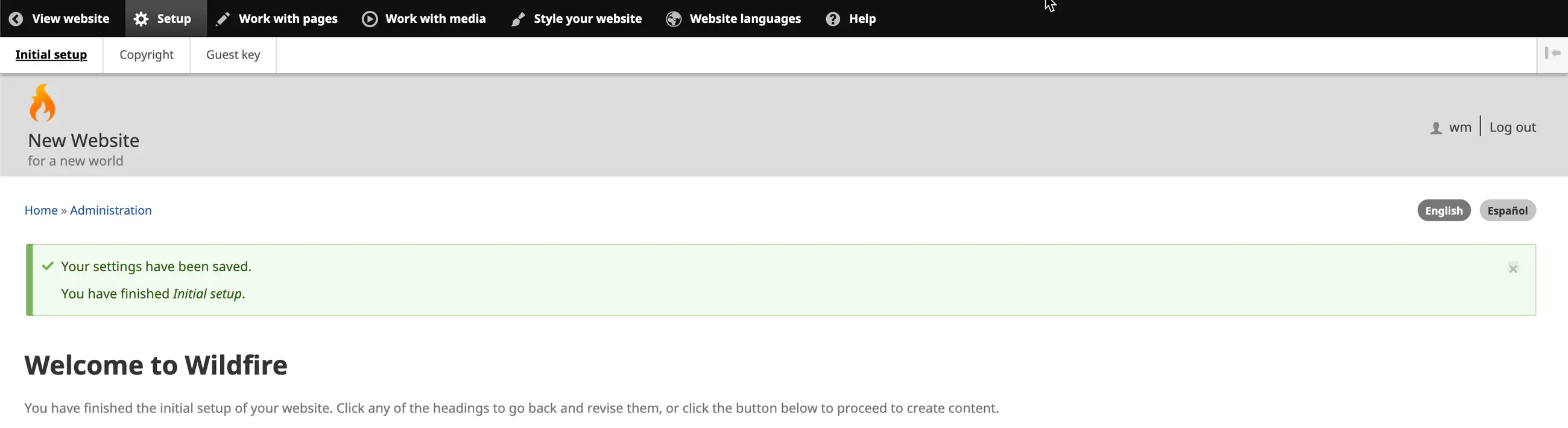 1. You have now completed (or chosen to skip) the steps in the Wildfire Initial Setup Guide.