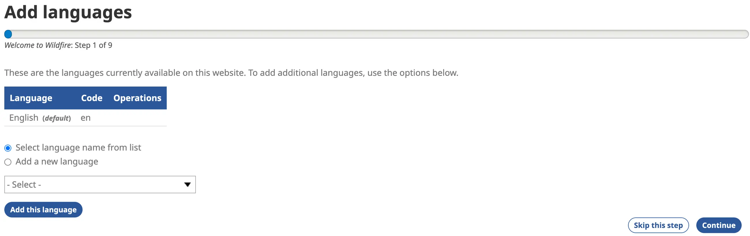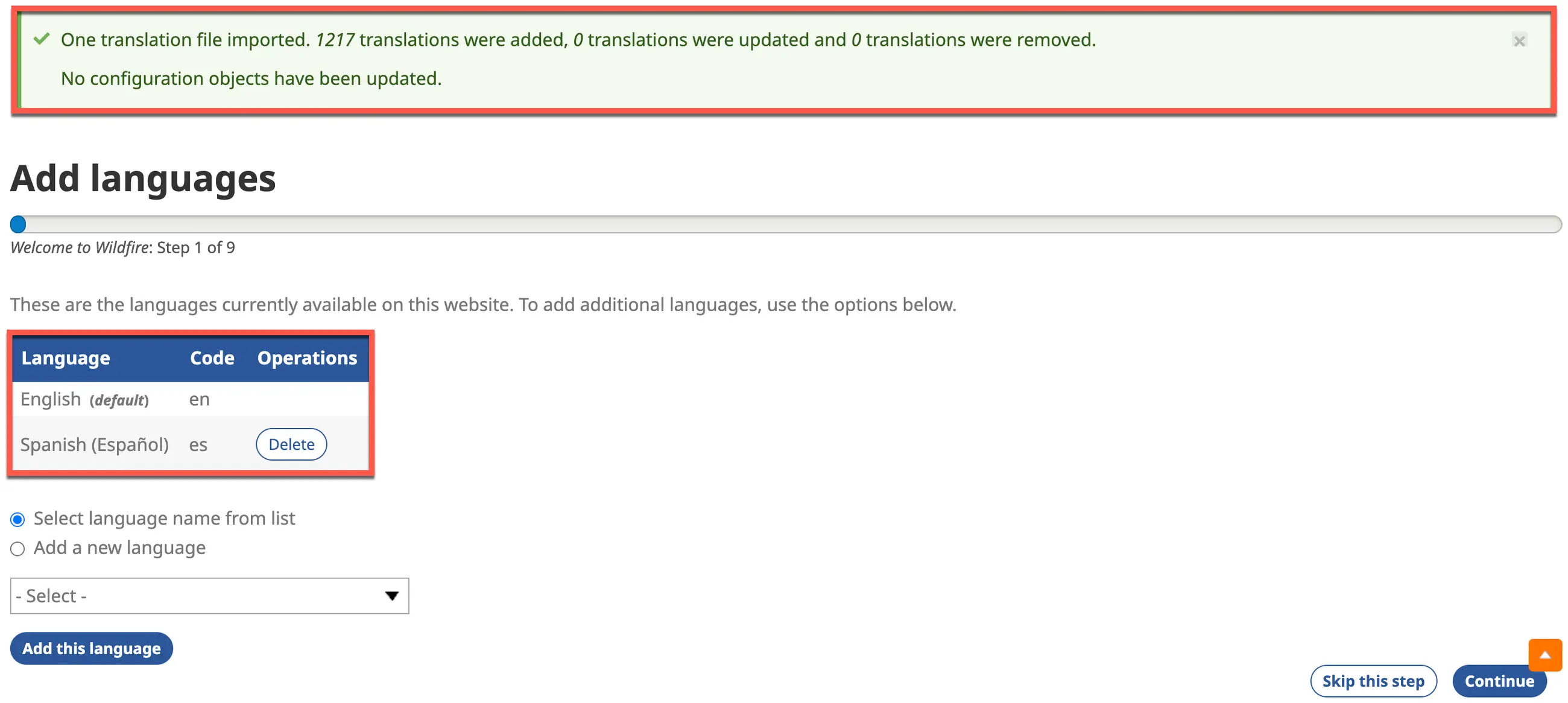 d) It may take a few minutes for the system to import interface translations, and then you will be returned to the Add languages screen.