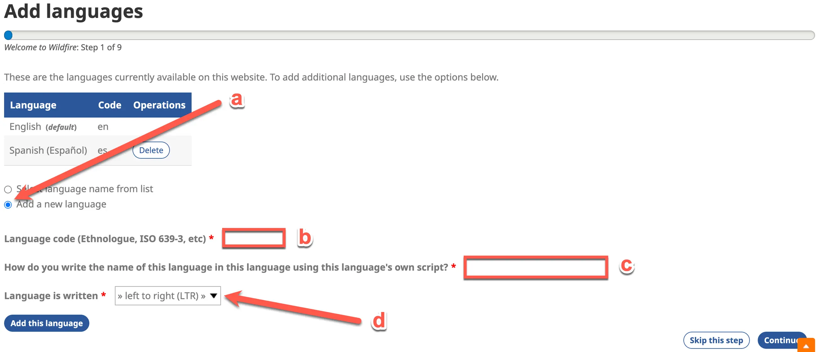 3. If you need to return to the screen Add languages, use your browser’s Back button.