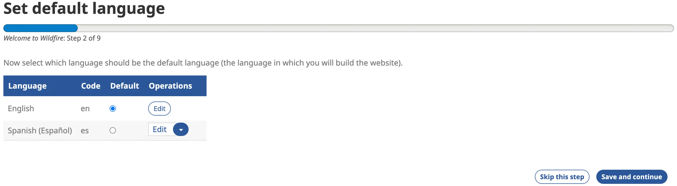 a) The Default language (selected in the previous step) is grayed out and cannot be disabled.