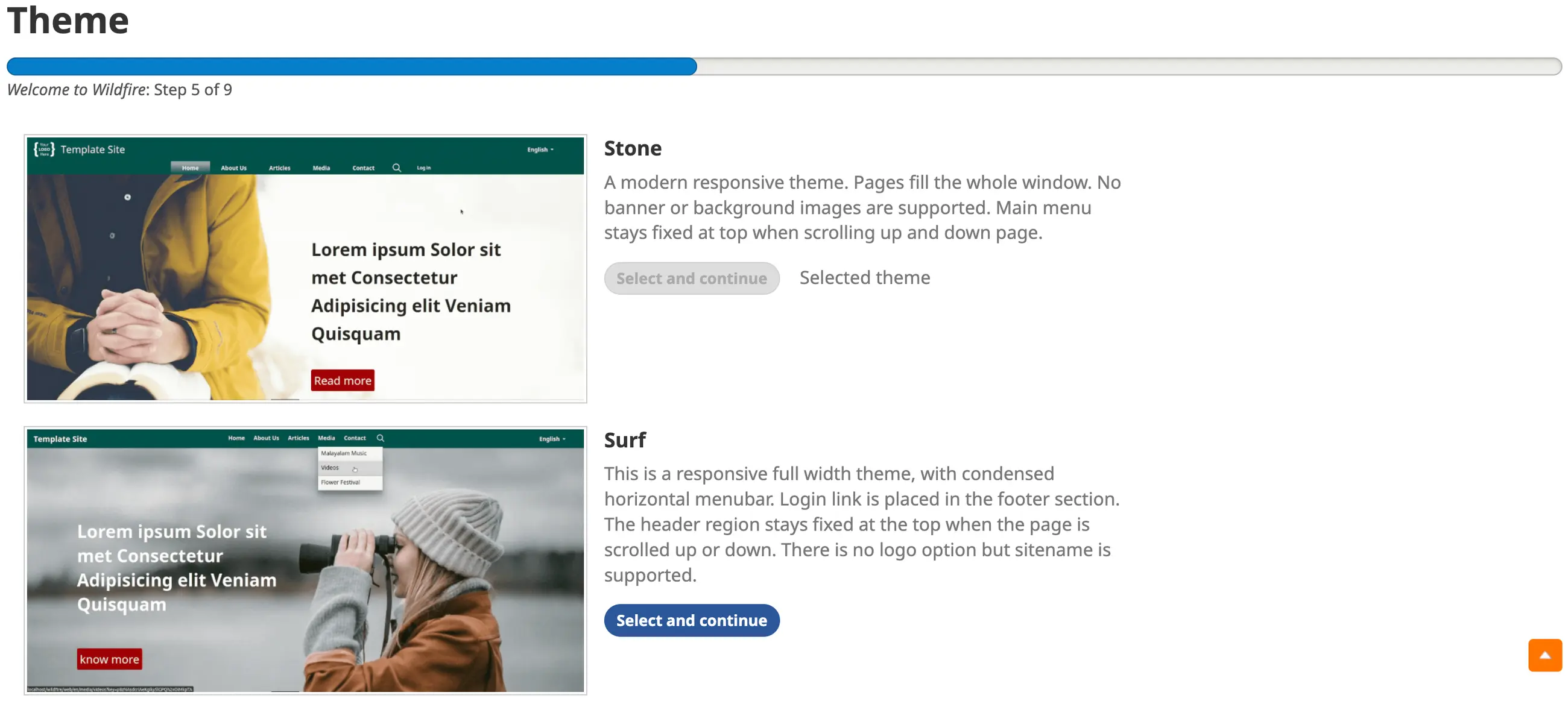 2. Leave the default setting (Stone) or click on the blue Select and Continue button next to another theme to select it instead.