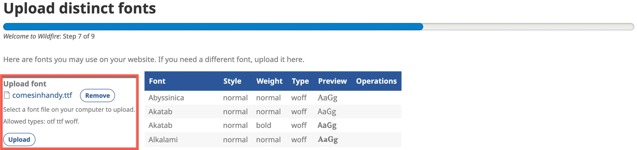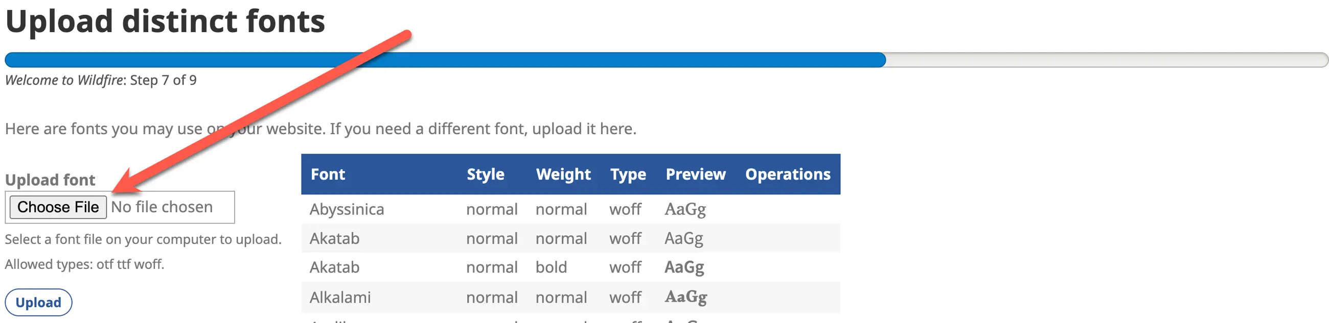 3. Many font choices are listed in the chart Available fonts, including any distinct fonts that you uploaded on the previous screen.