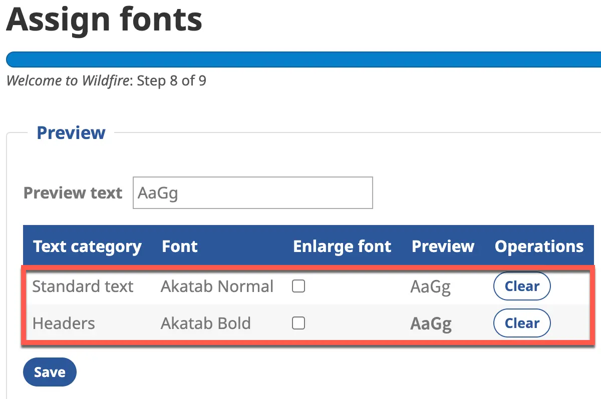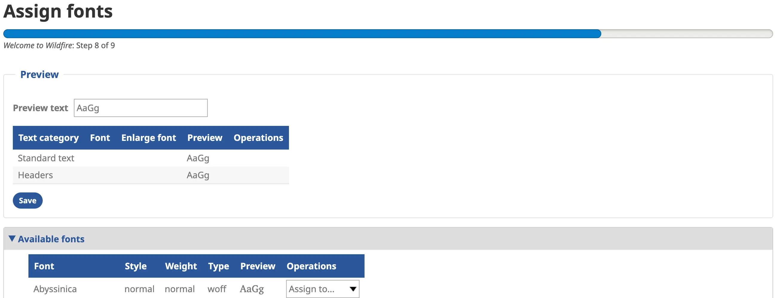 9. When you have completed your font selections, click on the Save and continue button at the bottom right.
