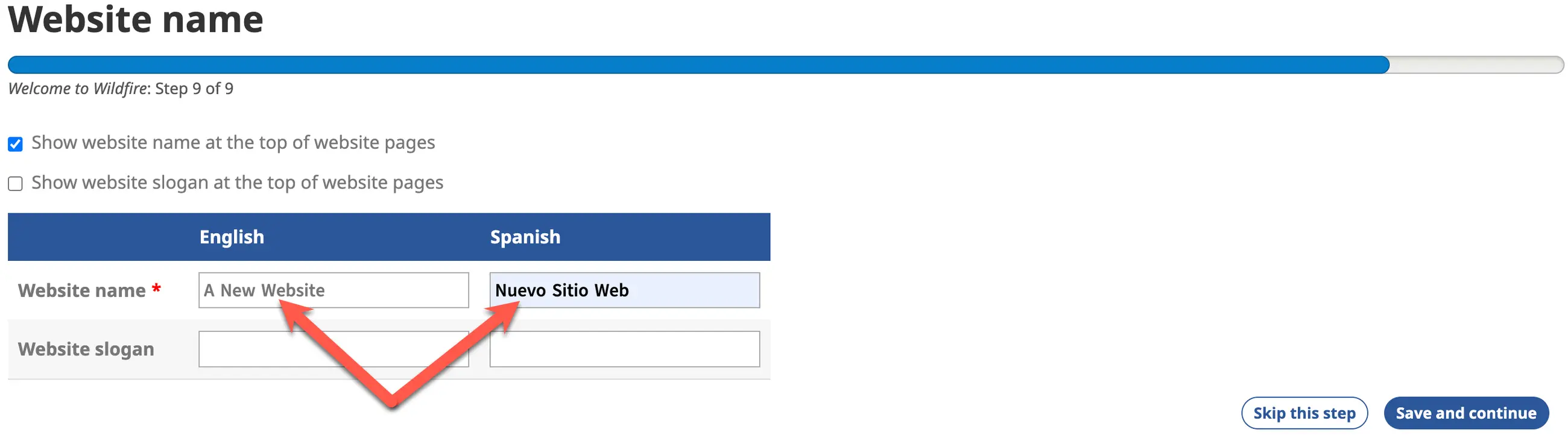 2. Each Wildfire website is created with English as a Navigation Language. If you will not be using English on your website, ask your Digital Publishing Manager for help.