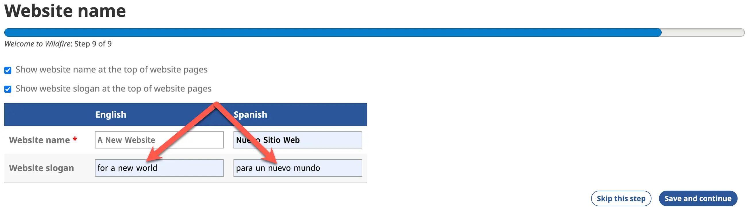 The website slogan should mean the same thing in all the Navigation Languages, translating the words as needed.