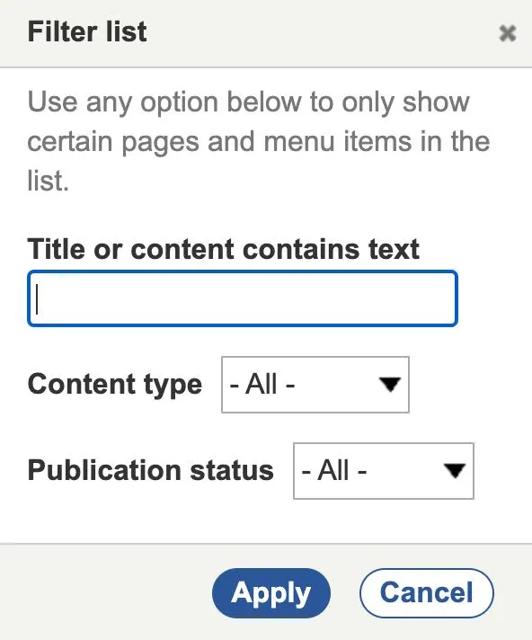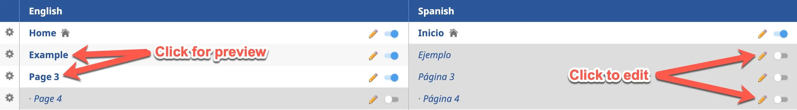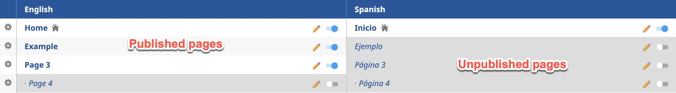 1) To unpublish a published page, click on the blue dot beside the pencil icon.