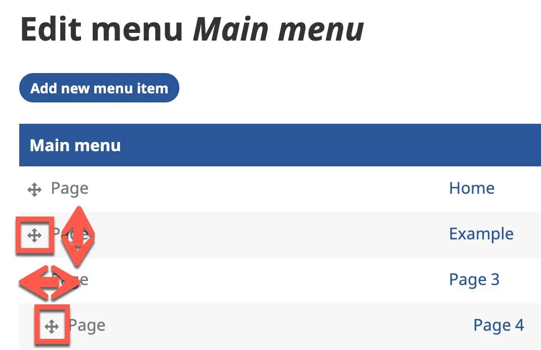 4. Change the level of a menu item by changing its position on this chart right or left.