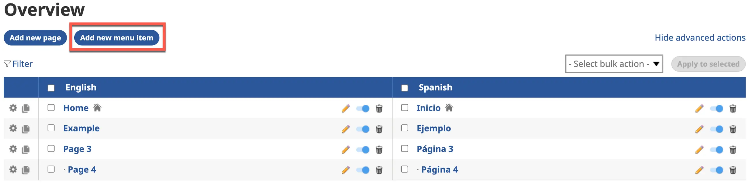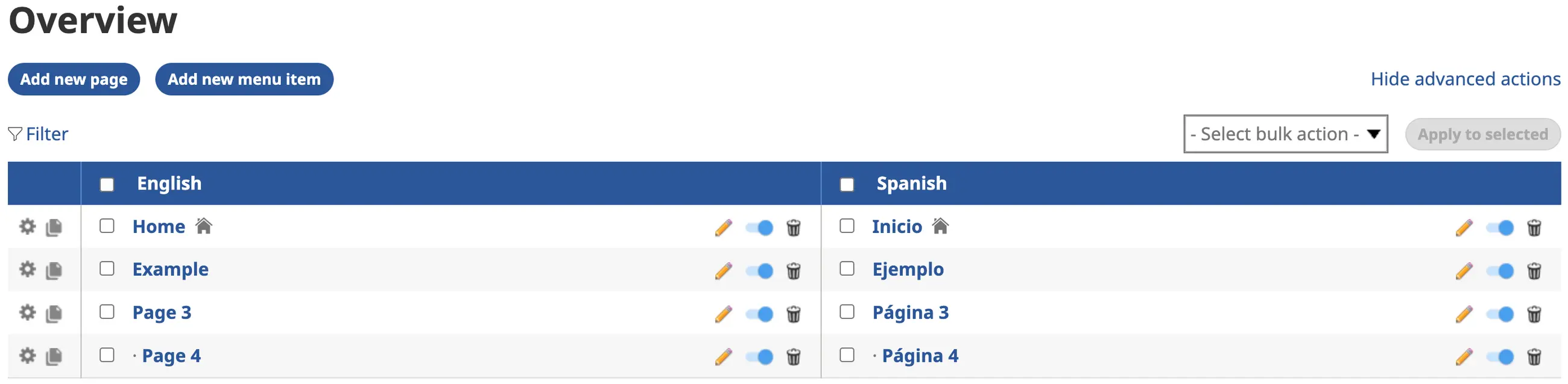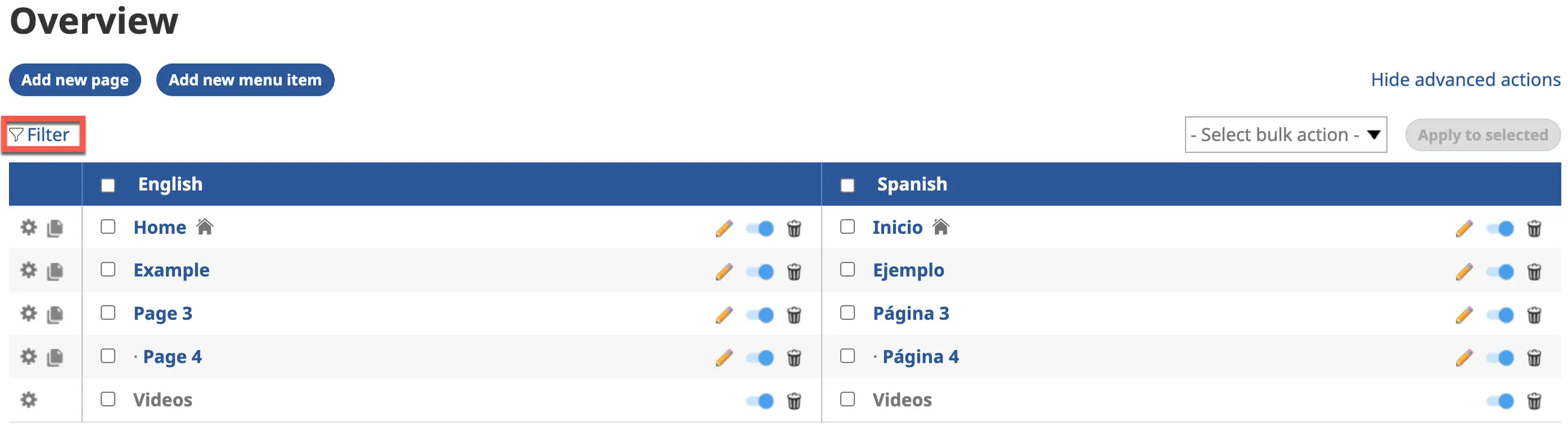 a) Click on the boxes next to page titles to select pages for bulk actions.