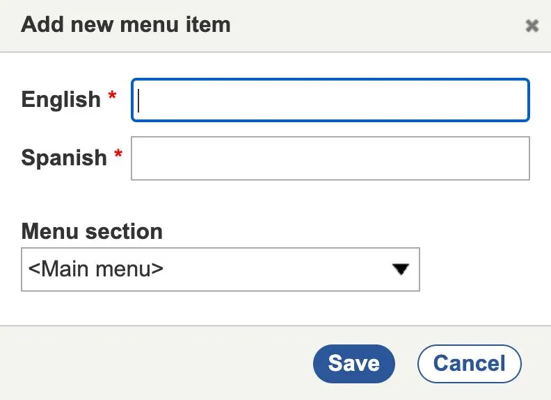 d) From the drop-down list Menu section, choose where on the current menu the new menu item is located.